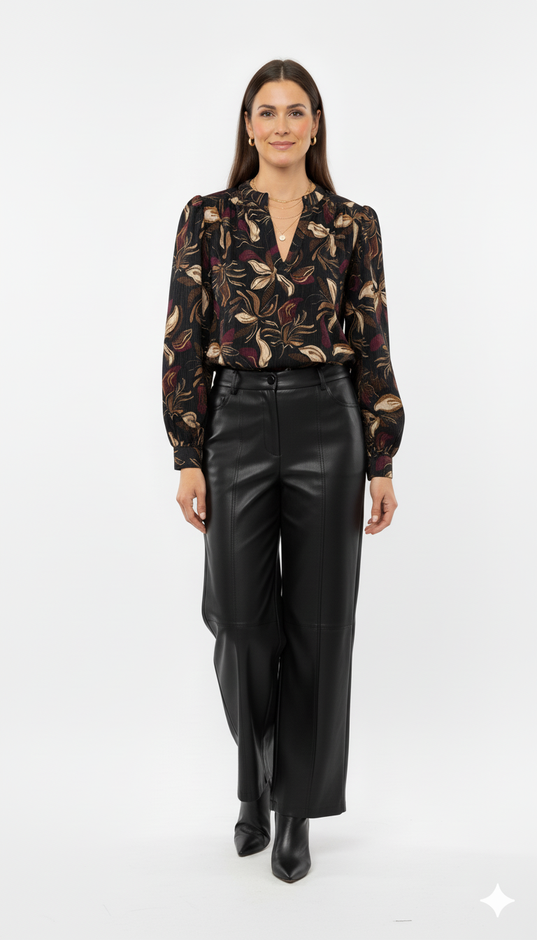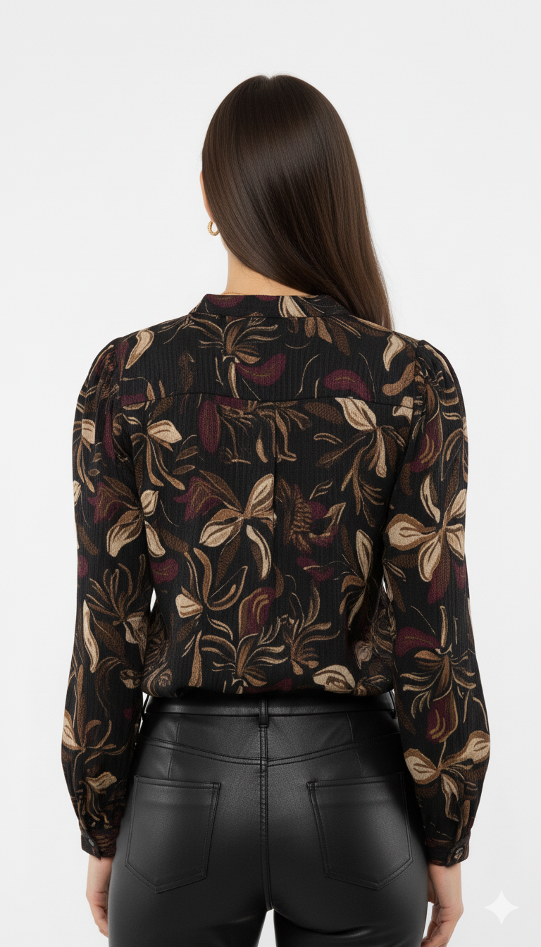 Maak kennis met Zwarte Floral Print Blouse – V-Hals & Lange Mouwen | Dames Blouse