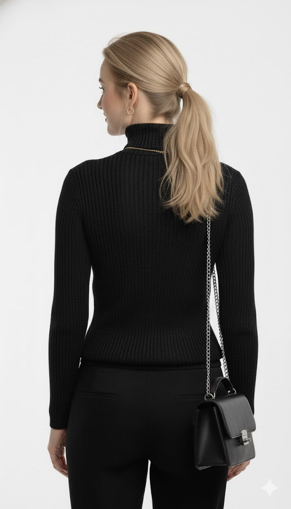 Zwarte Ribgebreide Coltrui met Shiny Lurex Luxe Damestrui