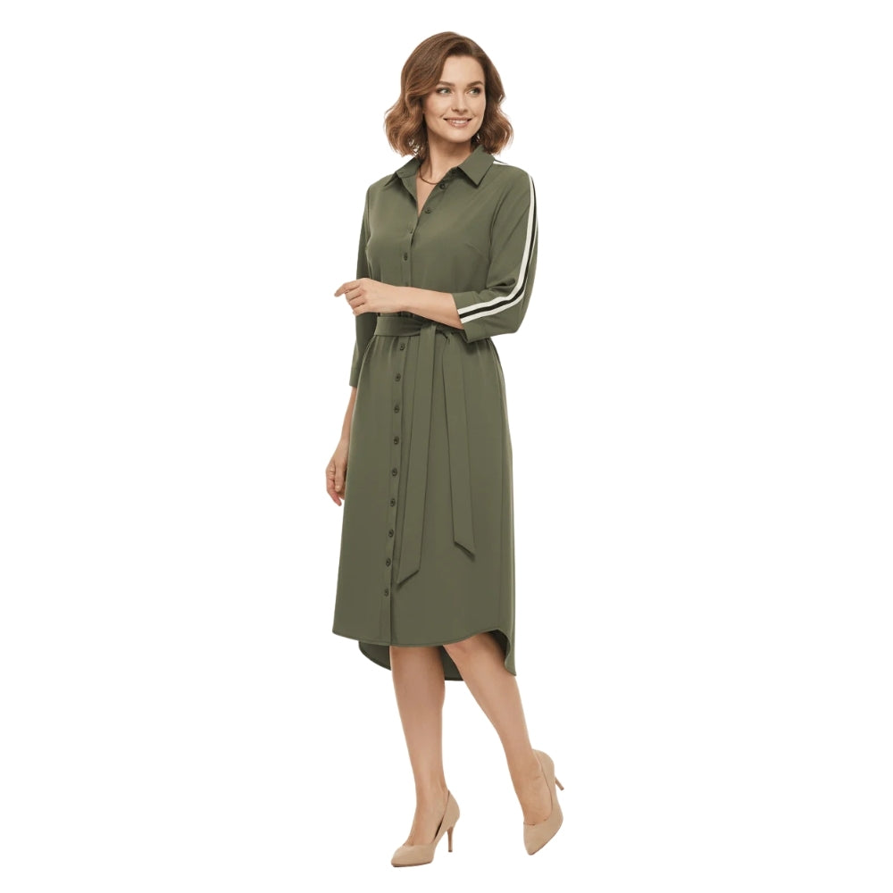 Maak kennis met Mi Piace Groene Overhemdjurk Dames – Sportieve Jurk met Tailleband