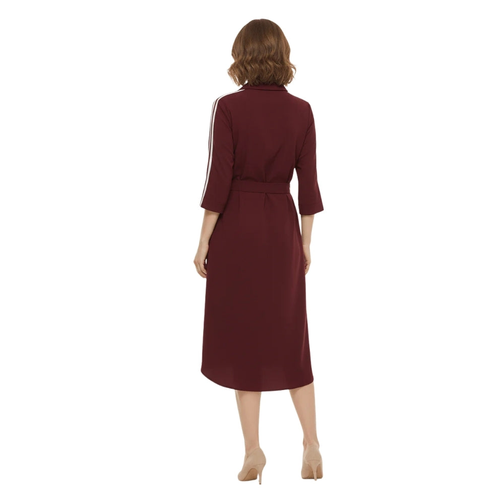 Mi Piace Bordeaux Rode Overhemdjurk Dames – Sportieve Jurk met Tailleband