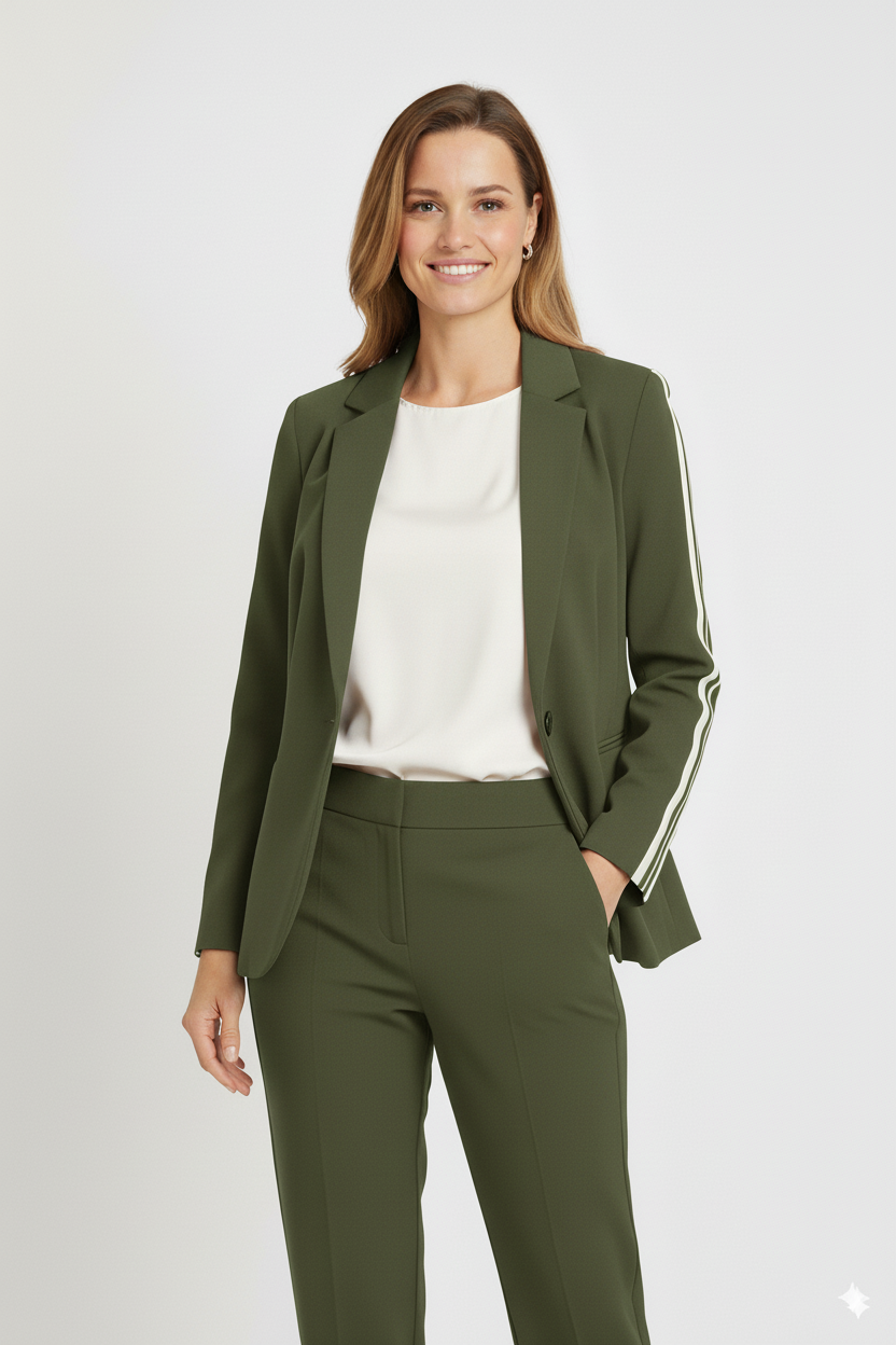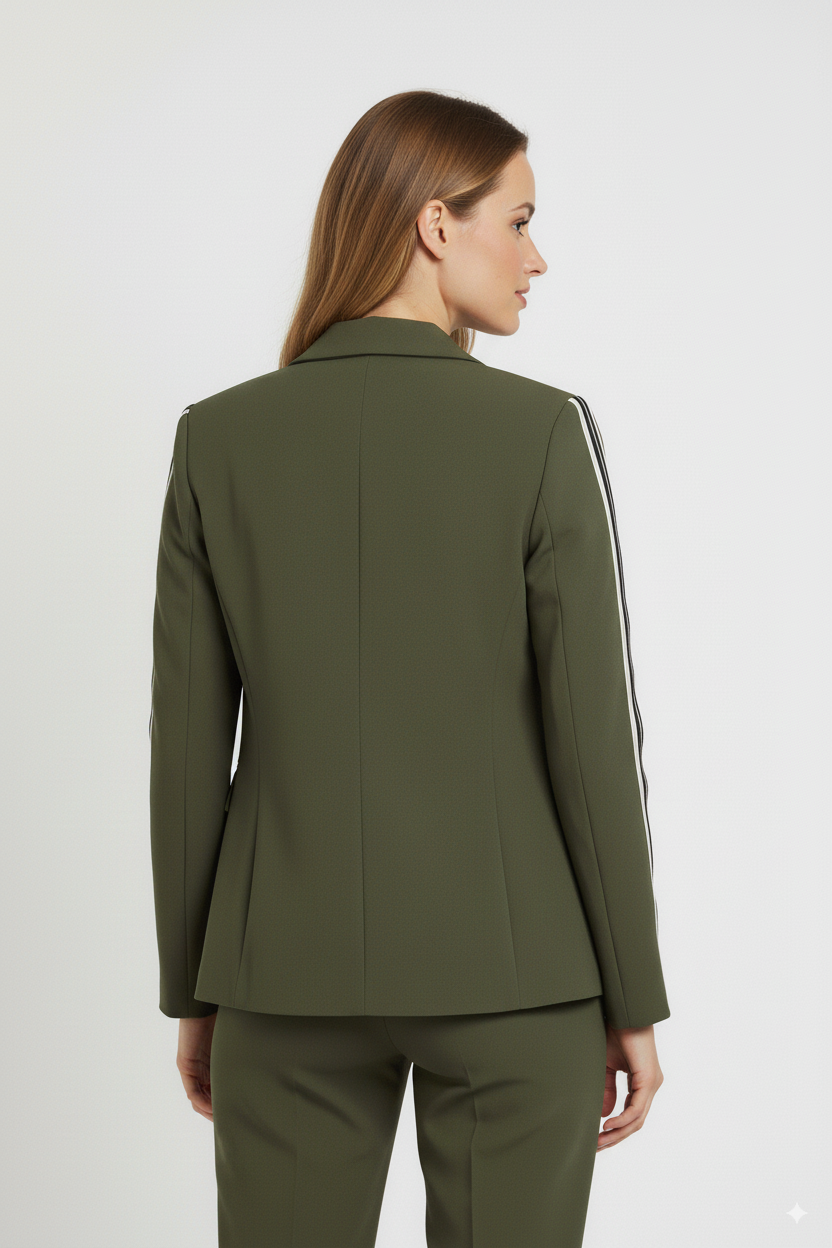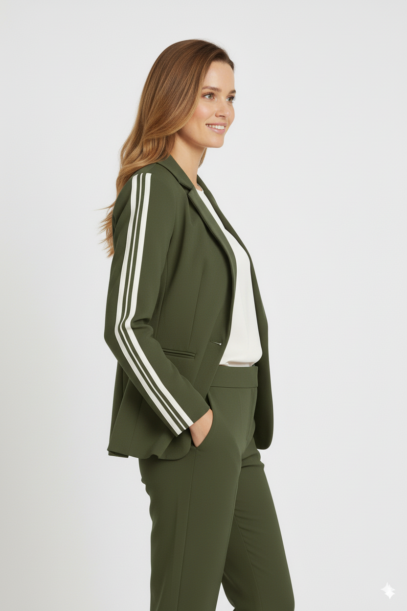 Maak kennis met Mi Piace – Olijfgroene Blazer met Sportieve Strepen op de Mouwen