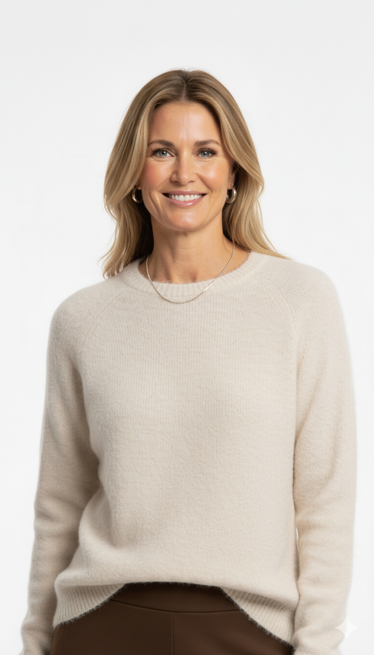 Maak kennis met Crèmekleurige Fijngebreide Ronde Hals Trui Zachte Basic
