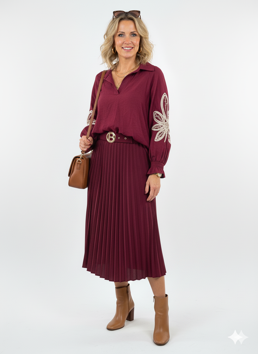 Bordeauxrode Blouse met Borduursel – Elegante Damesblouse