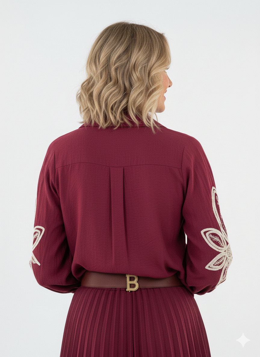Maak kennis met Bordeauxrode Blouse met Borduursel – Elegante Damesblouse