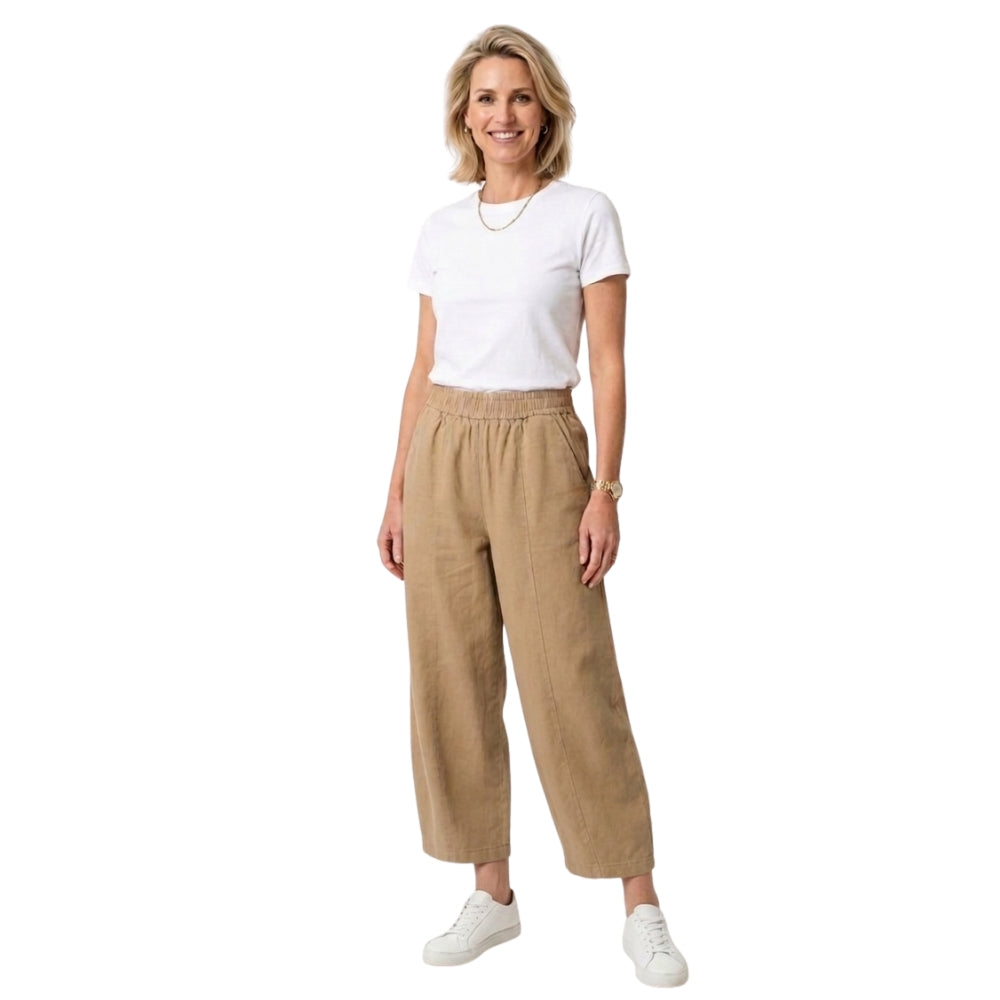De Indy 7/8 katoenen ballonbroek in beige combineert comfort met een trendy silhouet. De ballonvorm en cropped lengte geven een speelse, moderne uitstraling die perfect is voor elke dag.