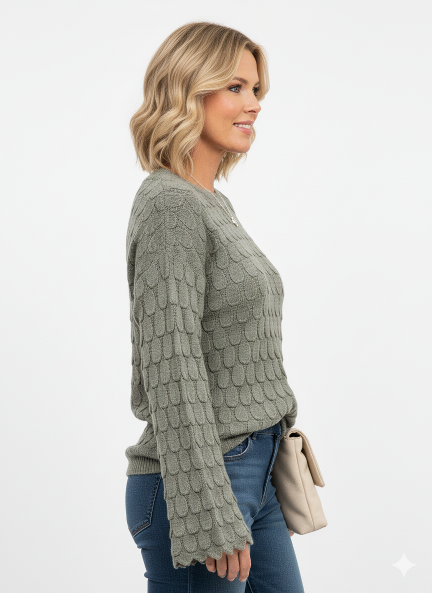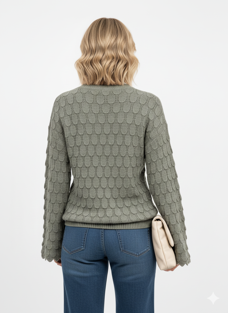 Olijfgroene Gebreide Trui met Reliëfpatroon Zachte & Stijlvolle Damestrui