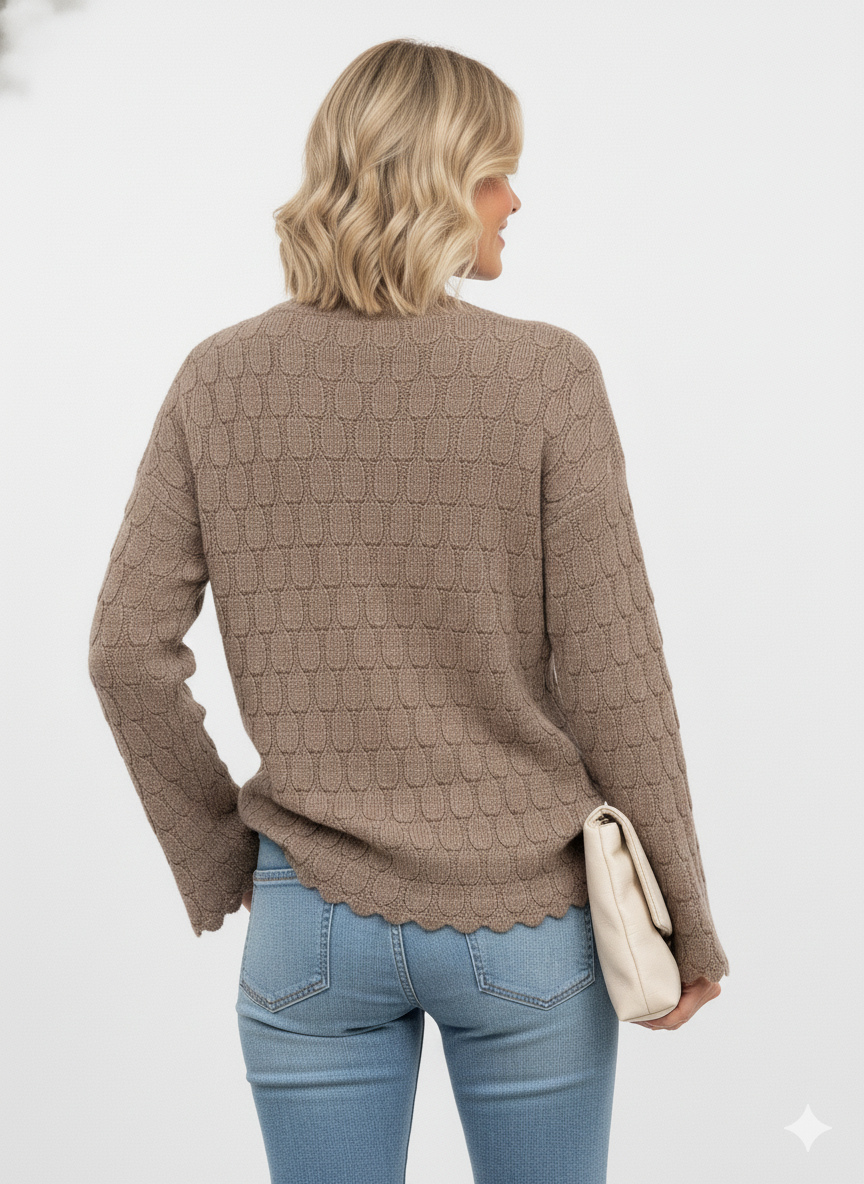 Taupekleurige Gebreide Trui met Reliëfpatroon Elegante & Comfortabele Damestrui