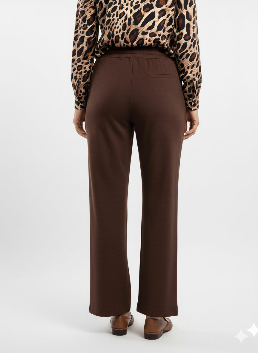 Donkerbruine Damesbroek met Rechte Pijpen & Elastische Taille