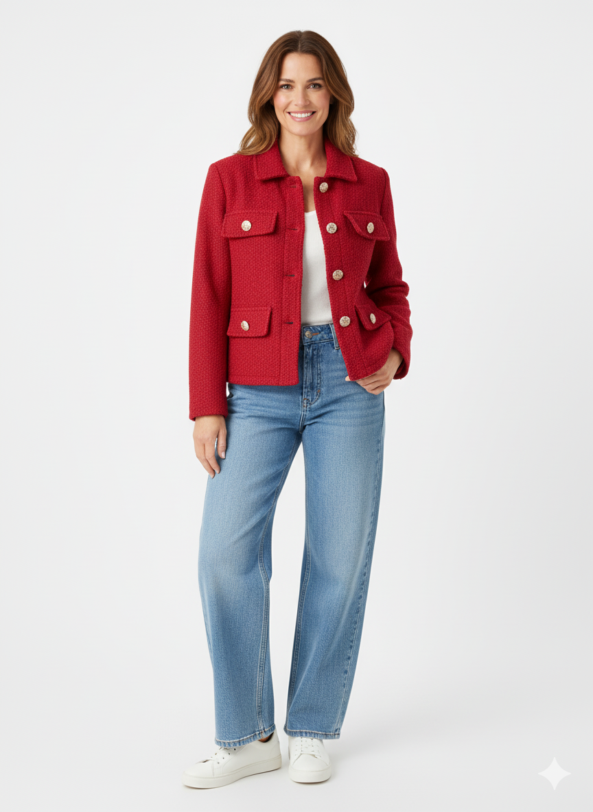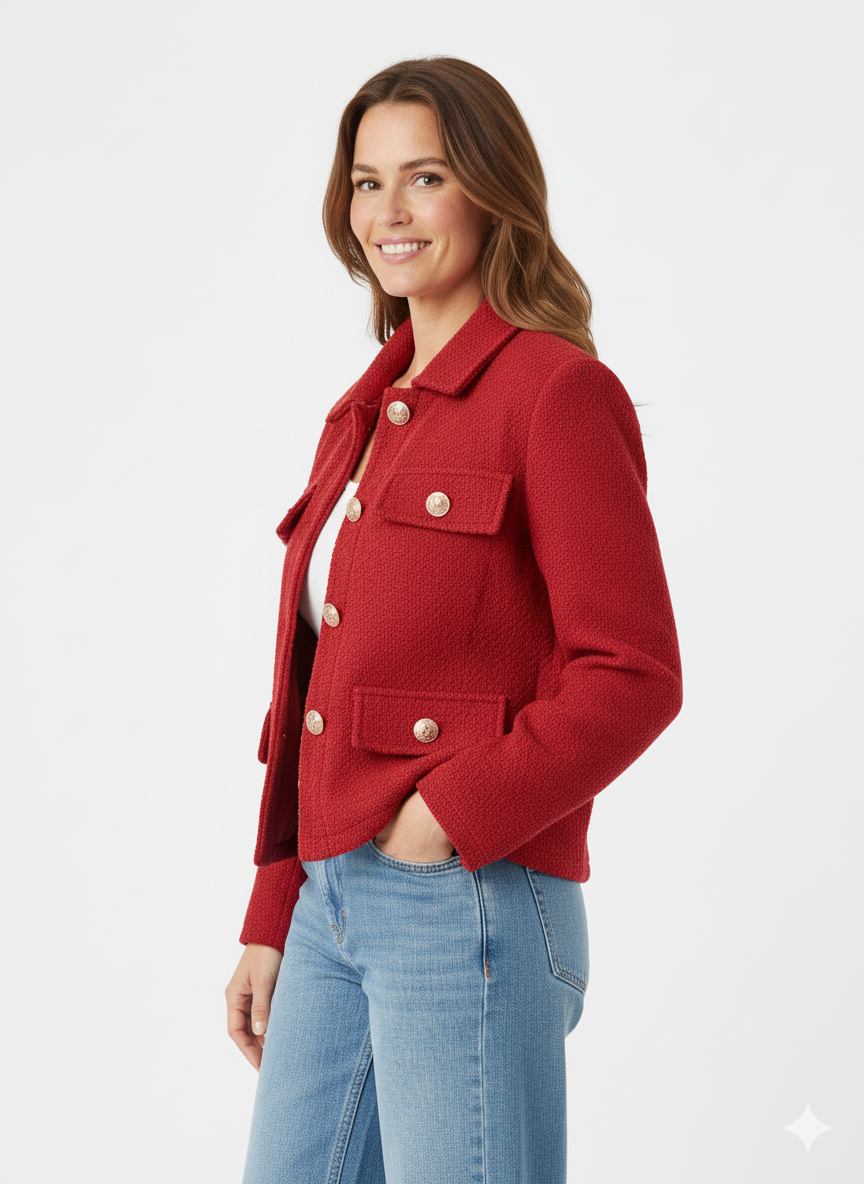 Maak kennis met Rode Dames Blazer Jas met Gouden Knopen