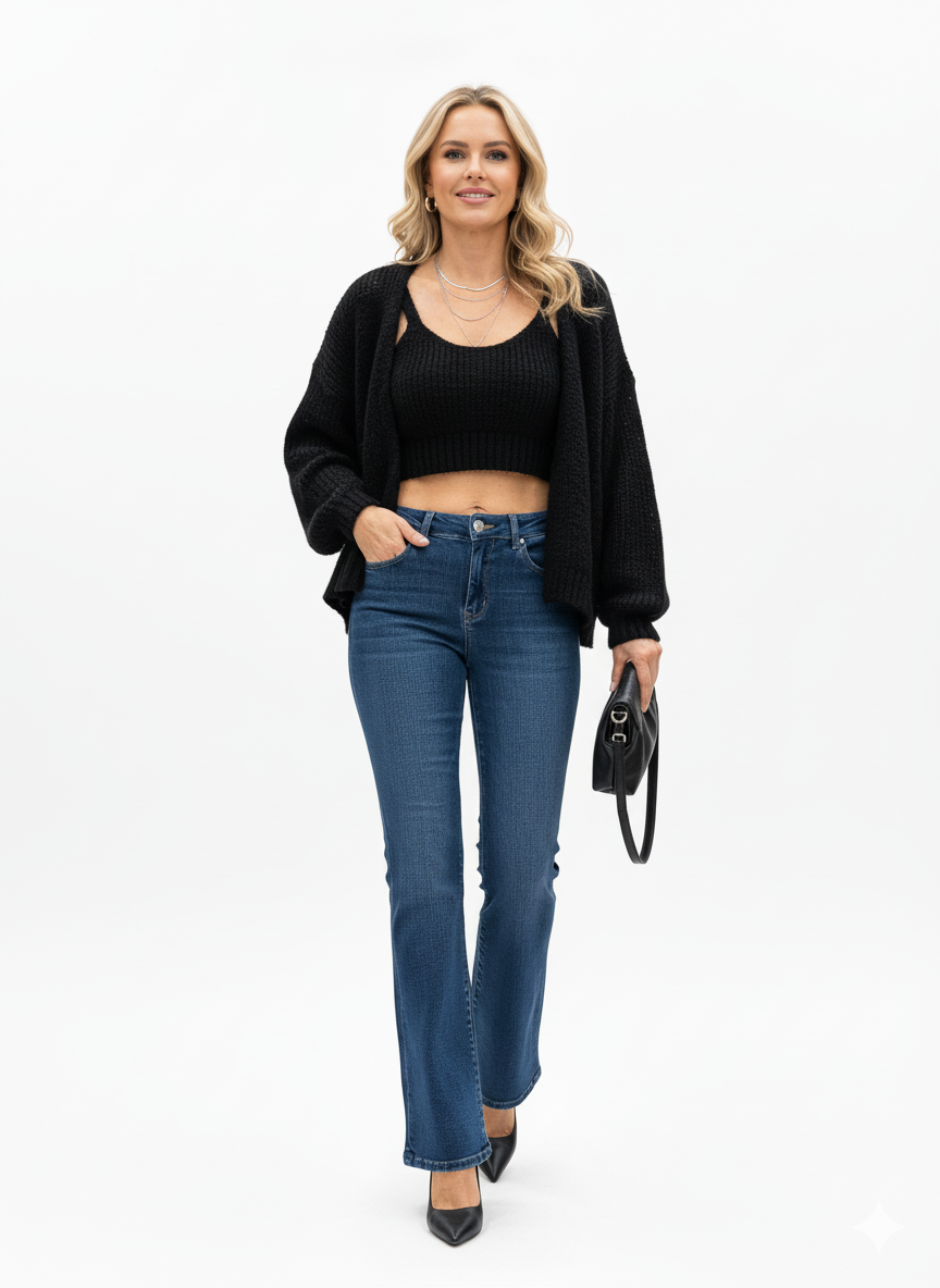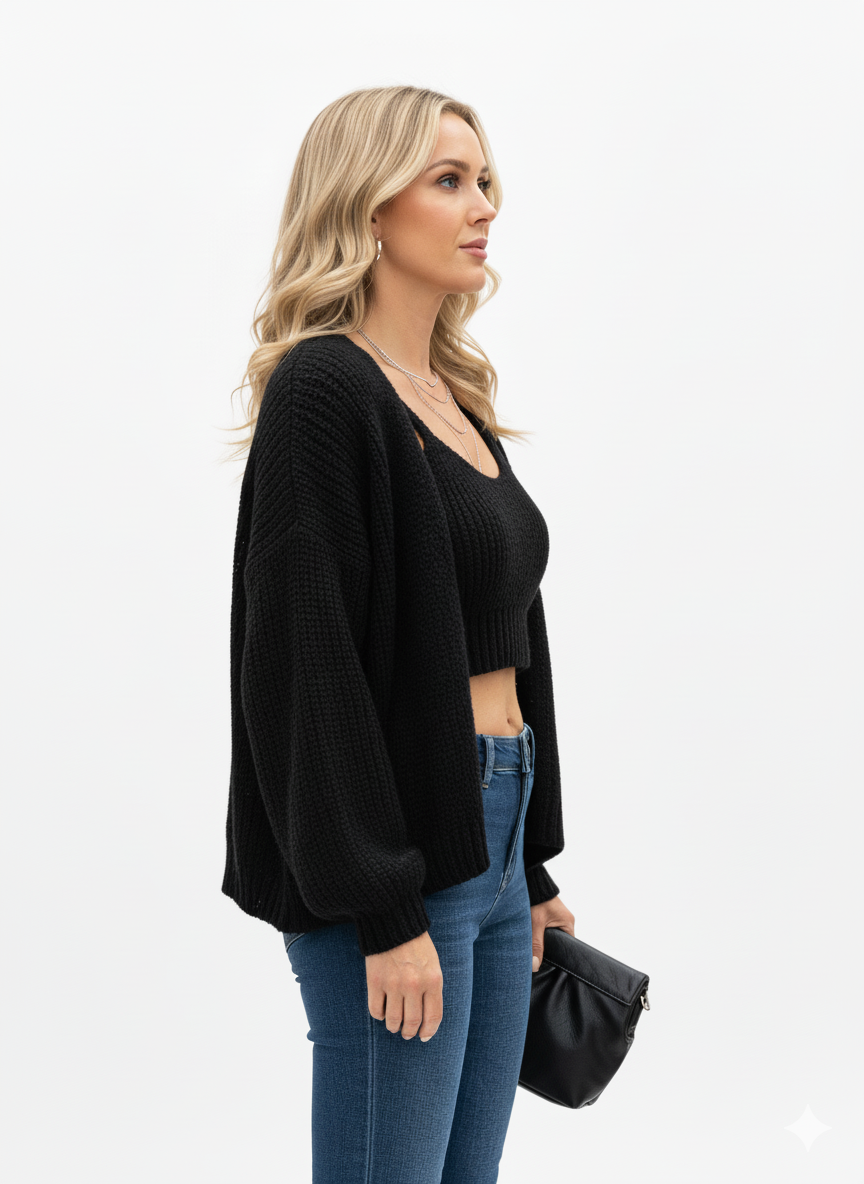 Maak kennis met Zwarte Knit Set – Cropped Top & Los Vest