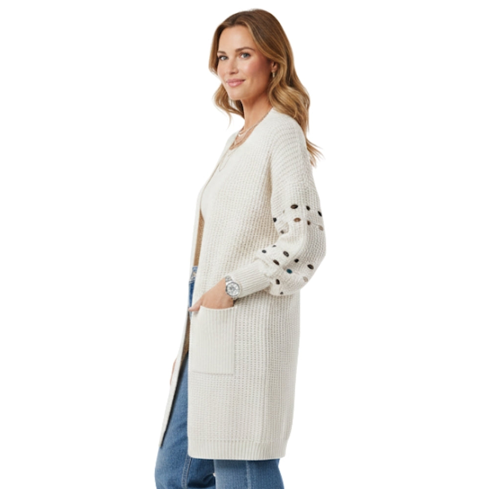 Gebreid Damesvest Beige met Ballonmouwen – Elegant & Comfortabel