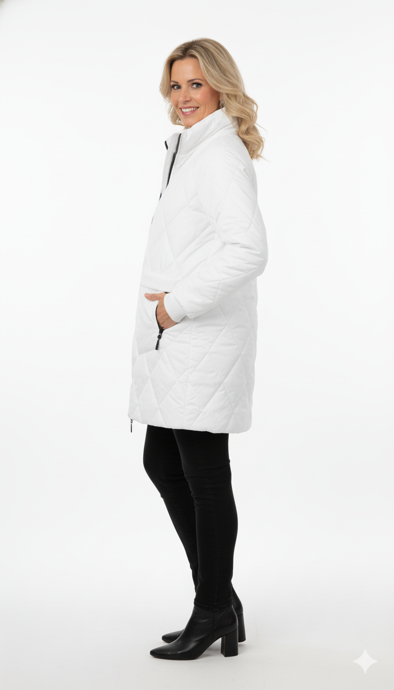 Maak kennis met Witte gewatteerde jas met hoge kraag stijlvolle dames winterjas