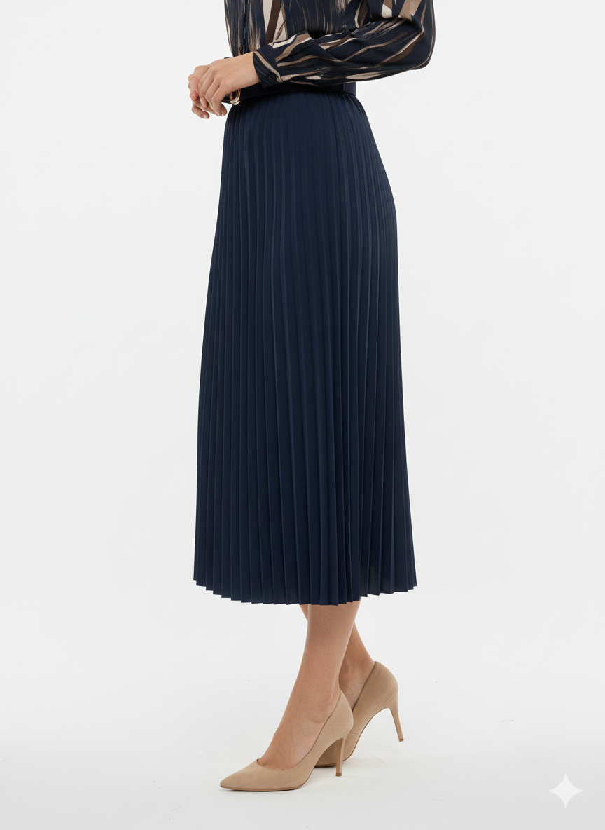 Maak kennis met Donkerblauwe Plissé Rok – Elegante Midi Rok met Plooien
