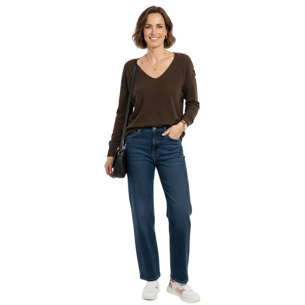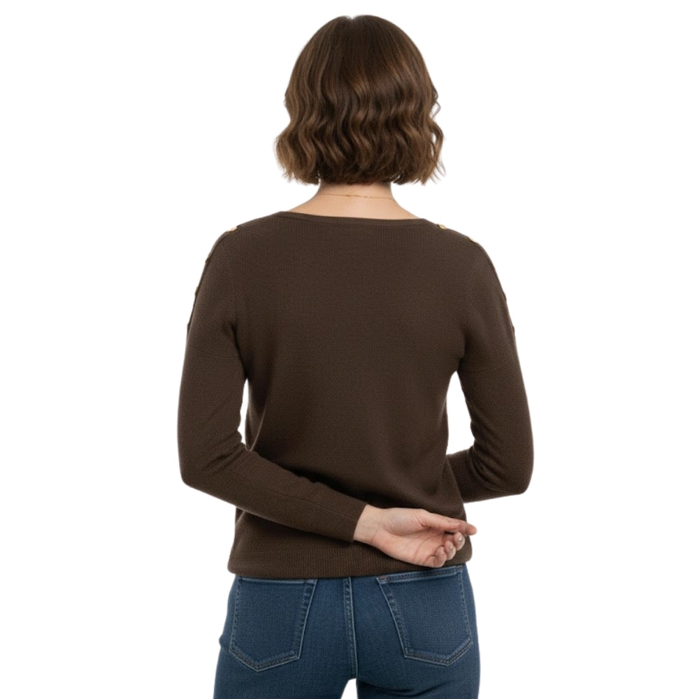 Sweater Buttons Bruin - Gebreide Trui met Knoopdetails voor Dames