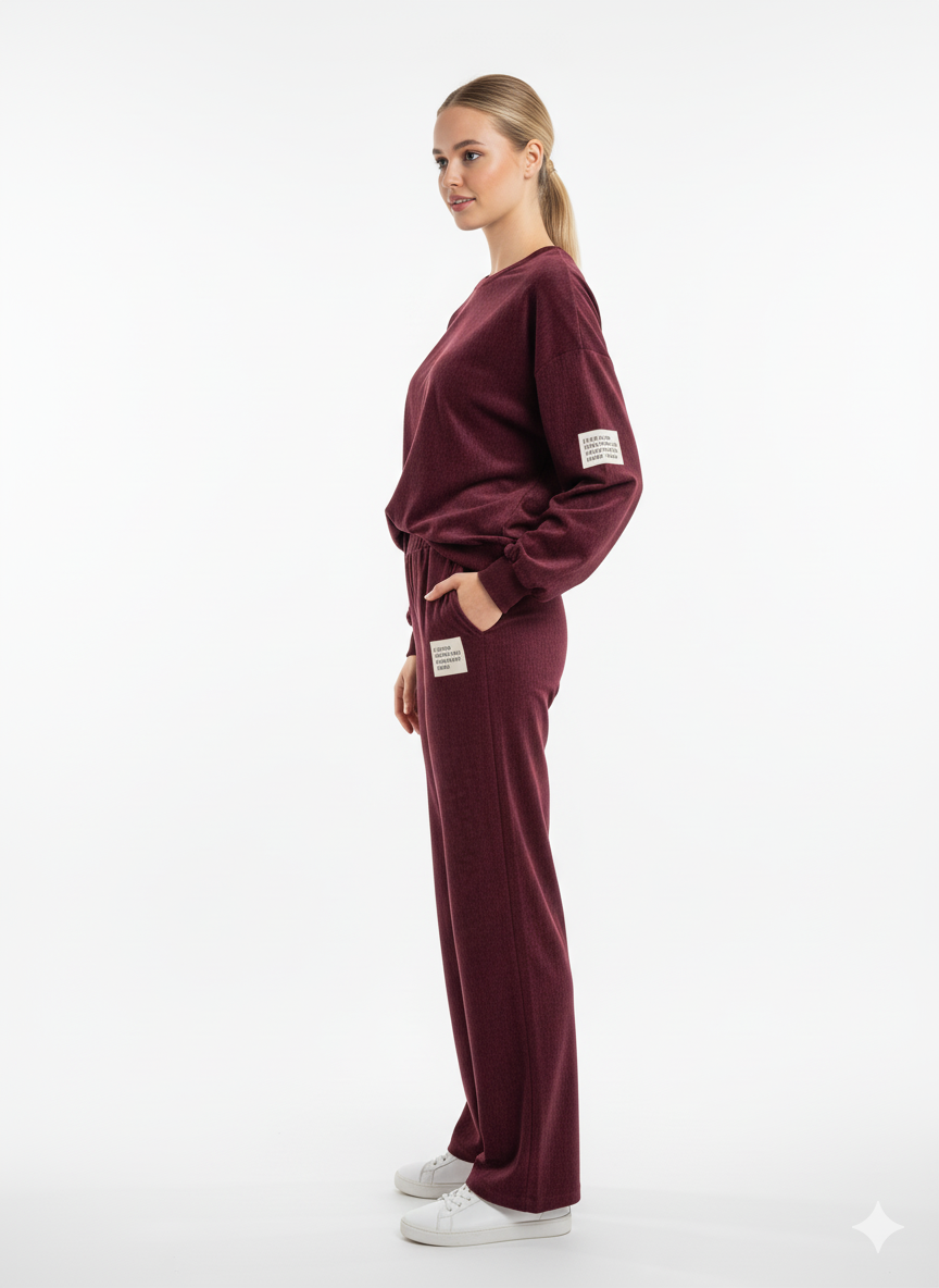 Maak kennis met Bordeauxrode Loungewear Set met Trui en Broek