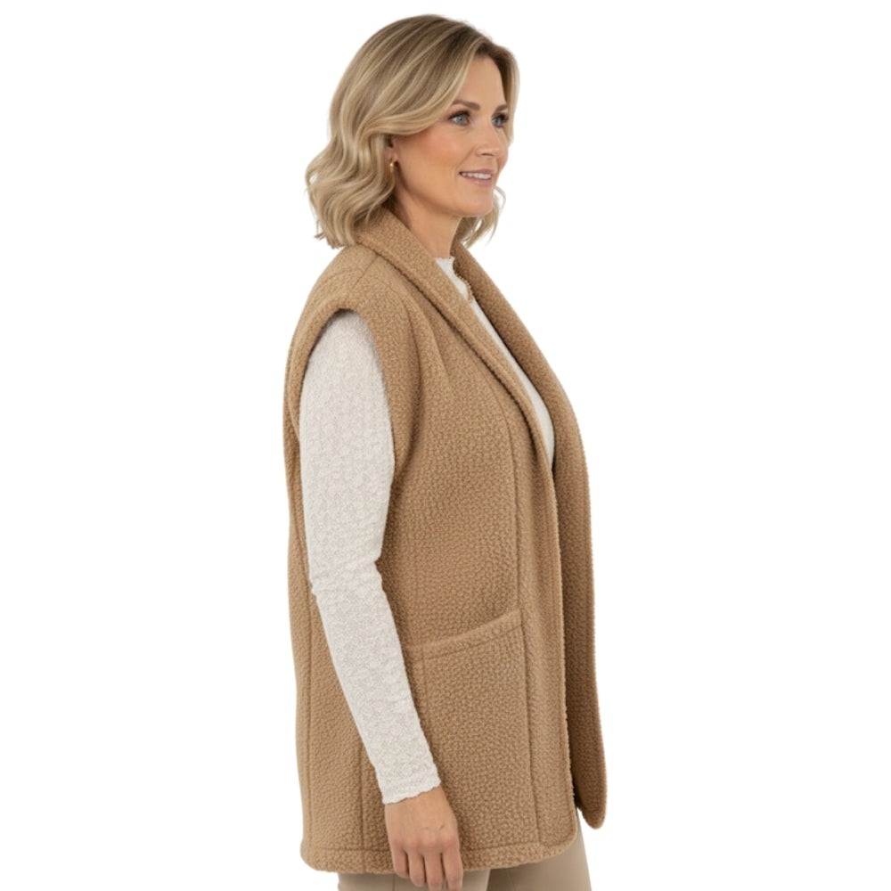 Ontdek ultiem comfort en tijdloze elegantie met het Clark dames gilet in beige. Dit luxe teddy vest is ontworpen voor de moderne vrouw die stijl en warmte moeiteloos wil combineren.