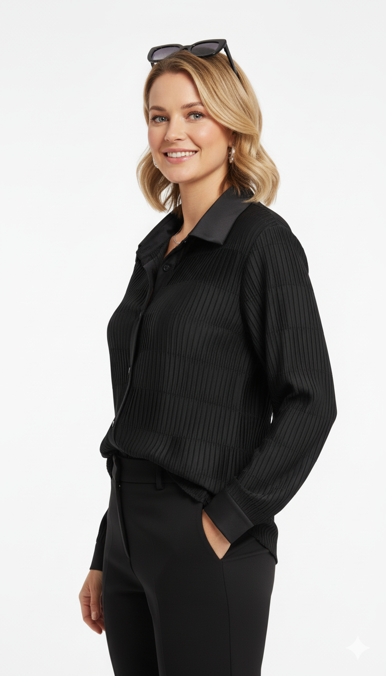 Zwarte Blouse met Rugplooien Dames Formele Back Pleated Shirt