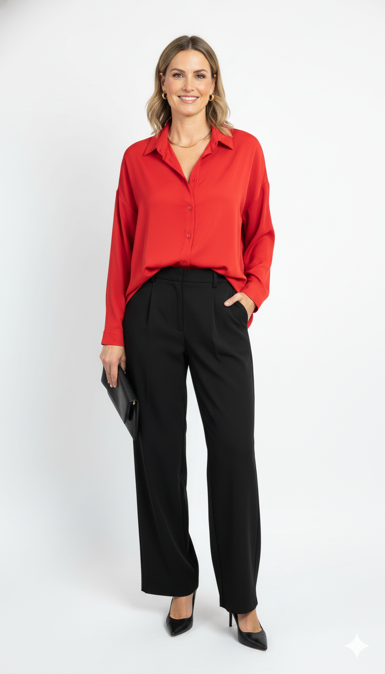 Rode Blouse met Rugplooien Dames Formele Back Pleated Shirt