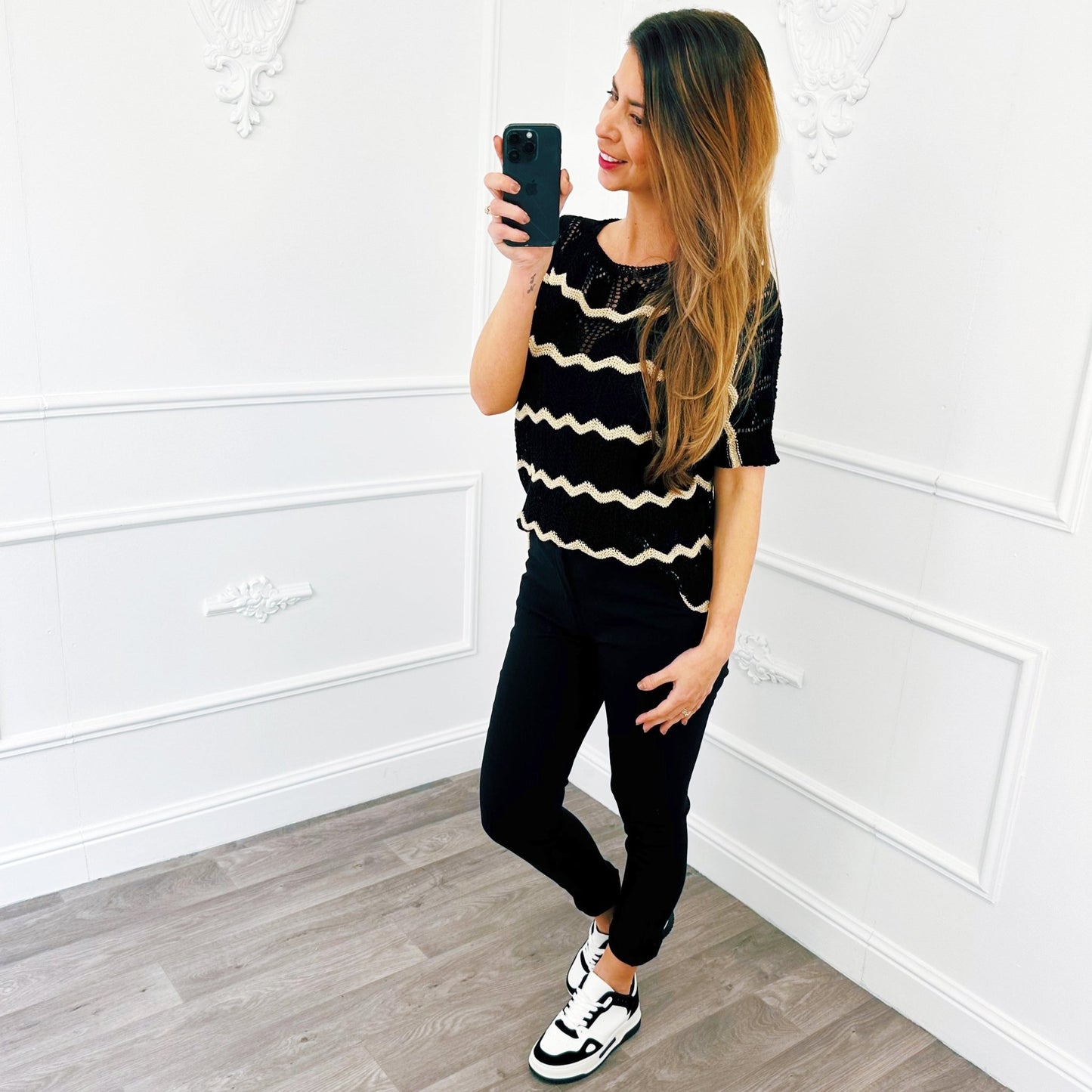 Styling advies: Ons model draagt de top met onze nieuwste chino en sneakers. Maar ook in combinatie met onze nieuwste jeans is dit ook super leuk!
