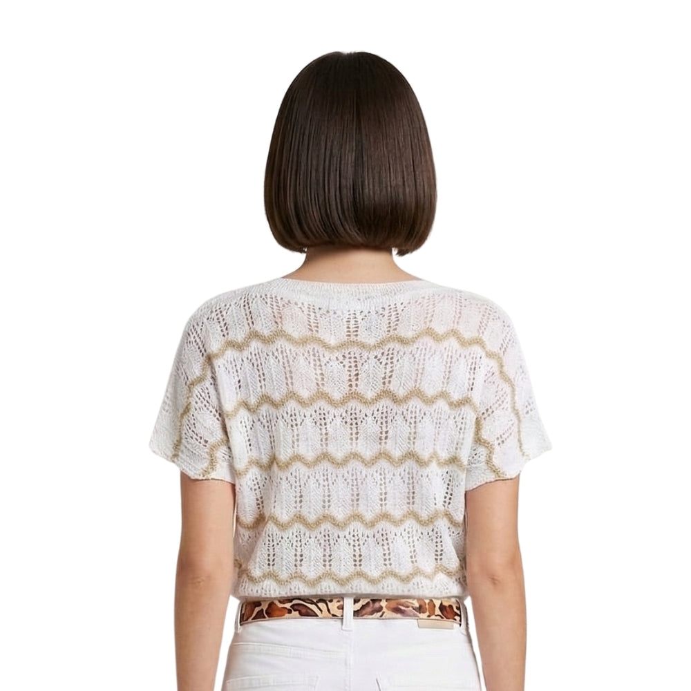 Fijngebreide Top met Zigzag Patroon - Wit