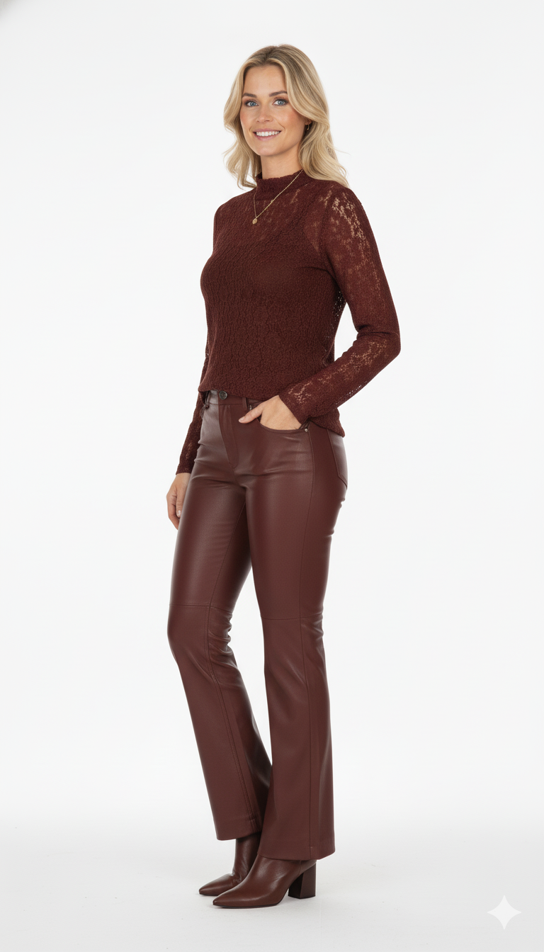 Bordeauxrode Kanten Top met Lange Mouwen Elegant & Vrouwelijk