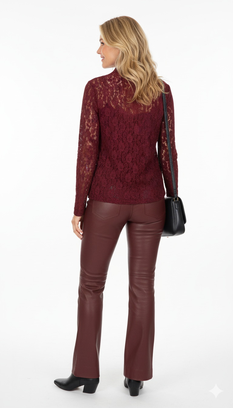 Maak kennis met Bordeauxrode Kanten Top met Lange Mouwen Elegant & Vrouwelijk