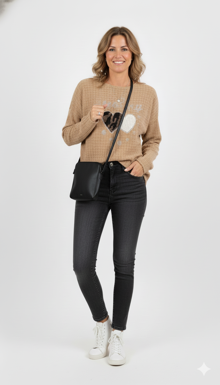 Maak kennis met Camel Trui met Hartjes en ‘Steal My Heart’-Print