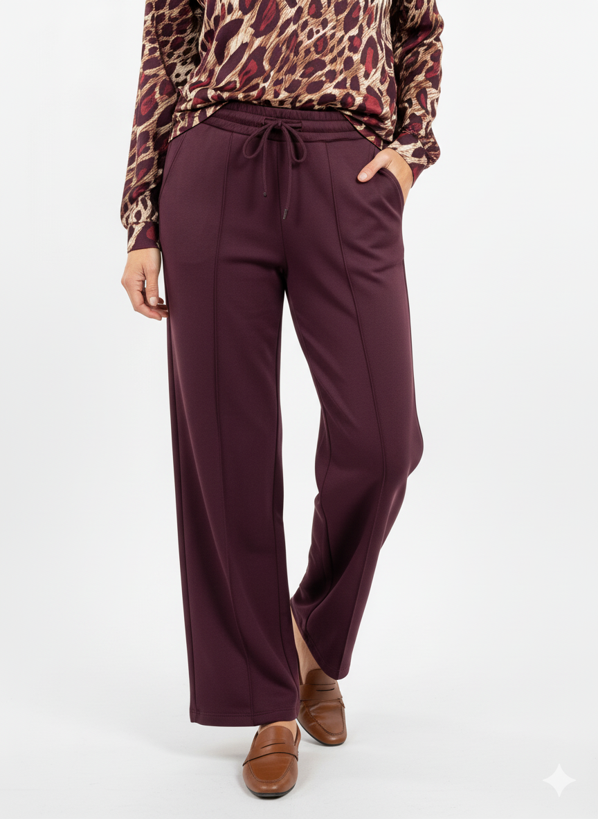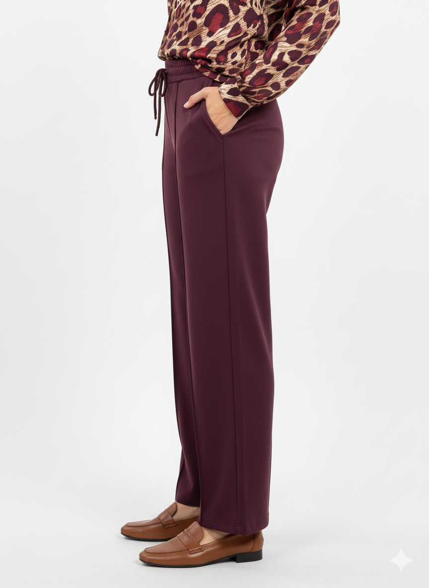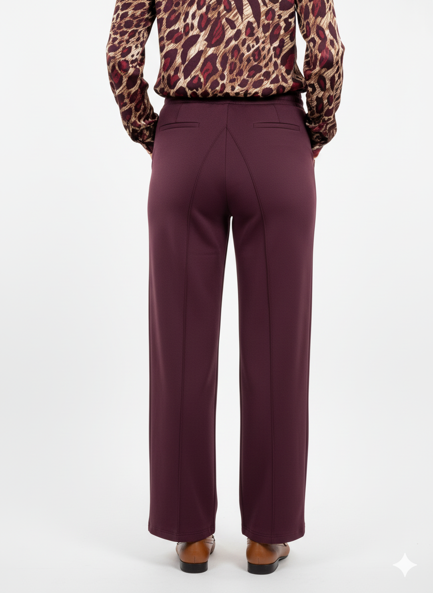 Maak kennis met Bordeauxrode Damesbroek met Rechte Pijpen & Elastische Taille
