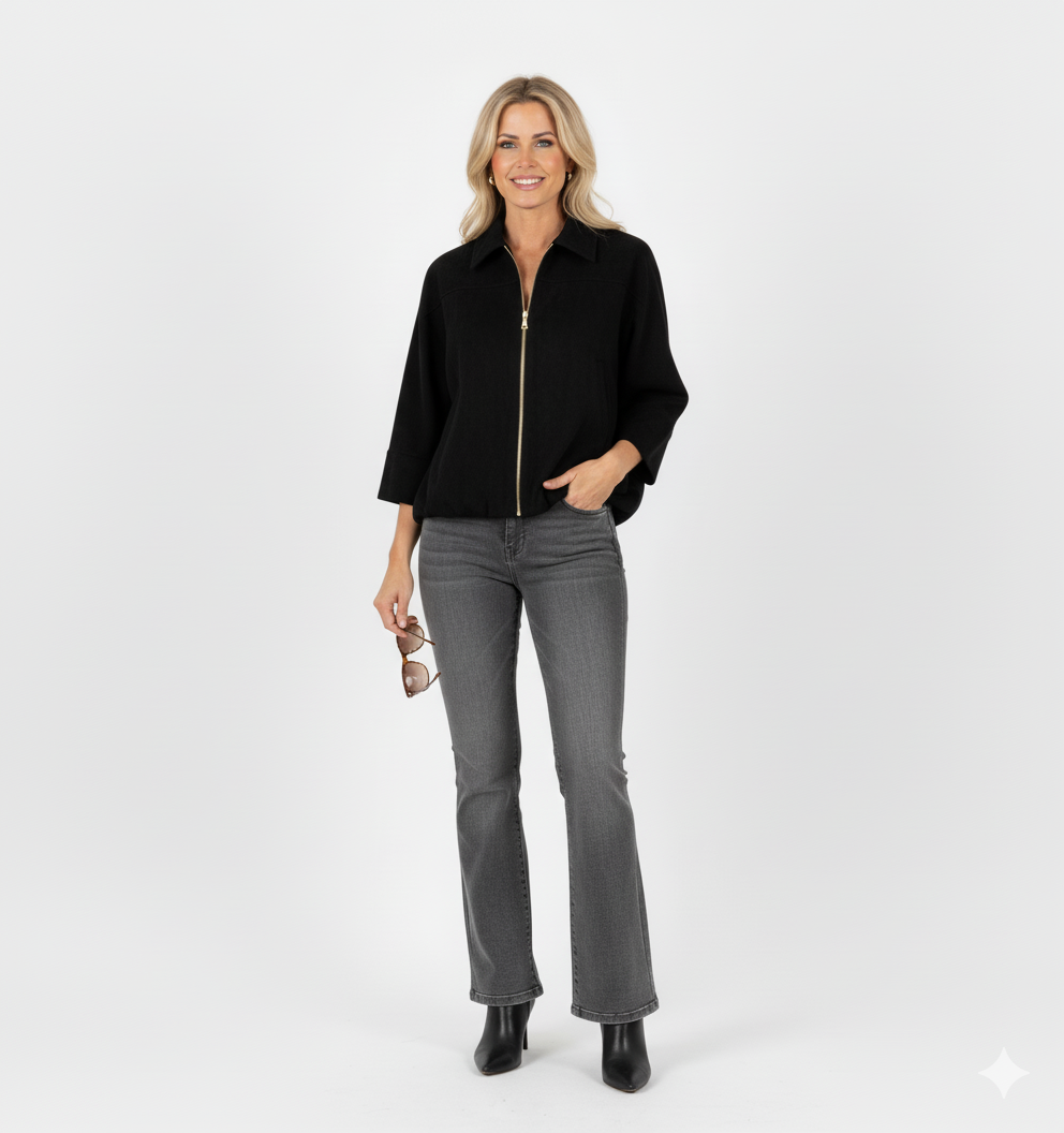 Zwart Kort Jack Luxe Damesjas met Rits en Kraag