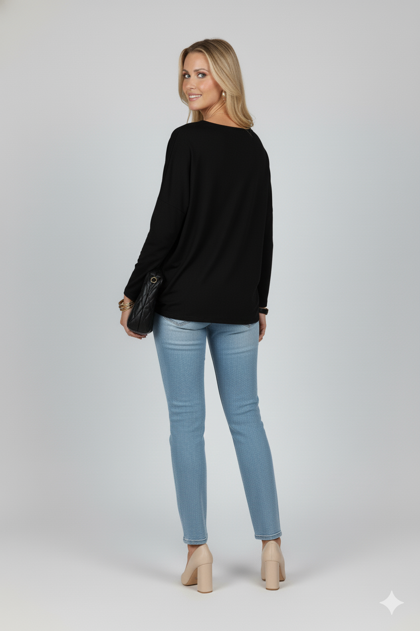 De V-hals en losse pasvorm geven de trui een vrouwelijke, moderne uitstraling. Perfect te combineren met jeans voor een casual look of met een rok en hakken voor een elegante avondstijl.
