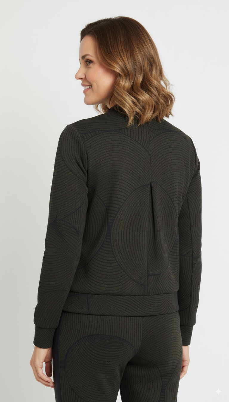 Mi Piace – Donkergroen Bomberjack met Geometrisch Patroon en Rits