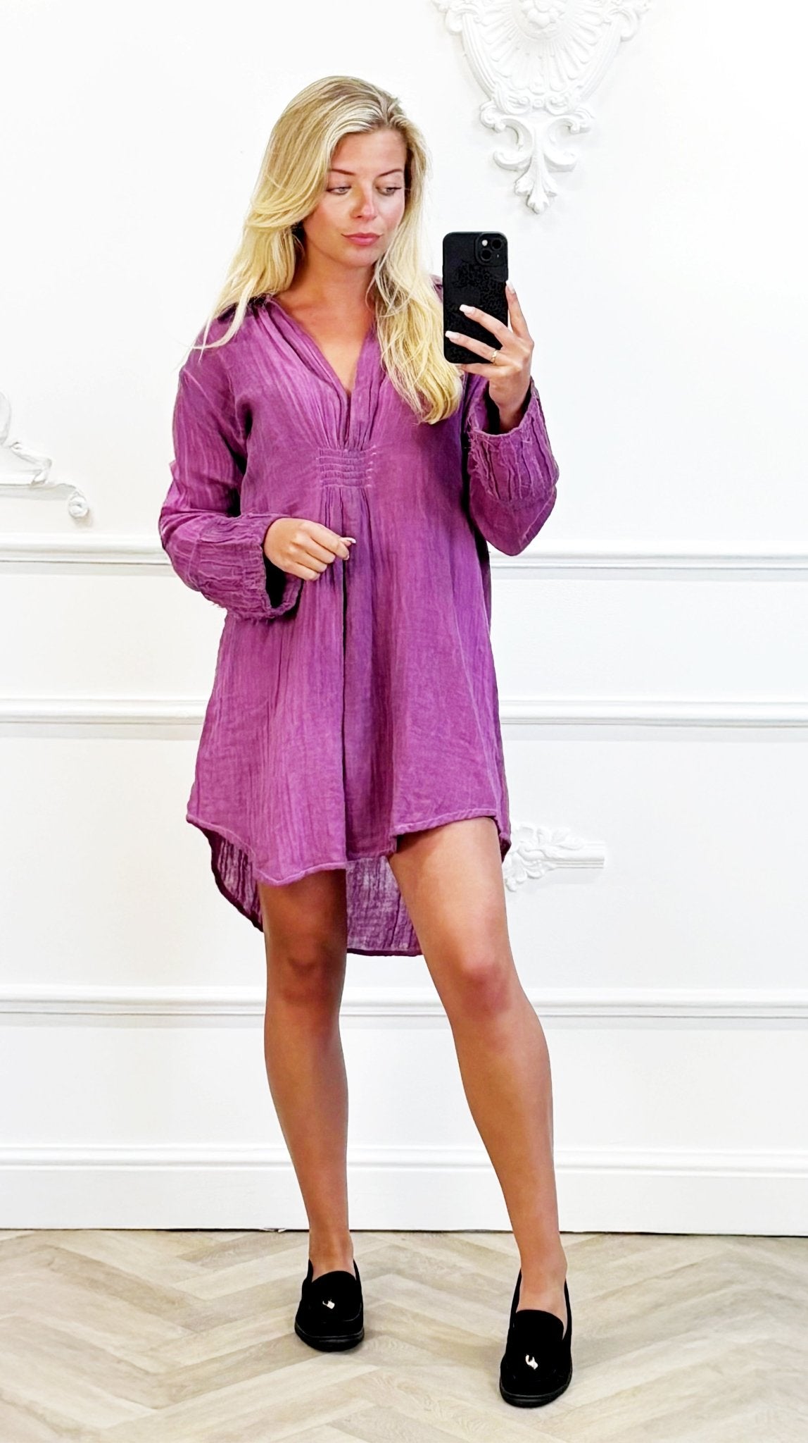 Regular price €14,95This purple cotton midi dress is perfect for an elegant and comfortable look. The breathable cotton ensures a comfortable fit, while the midi length creates a refined look. Whether you're going to a casual event or a day out, this dress is a versatile choice for any occasion.