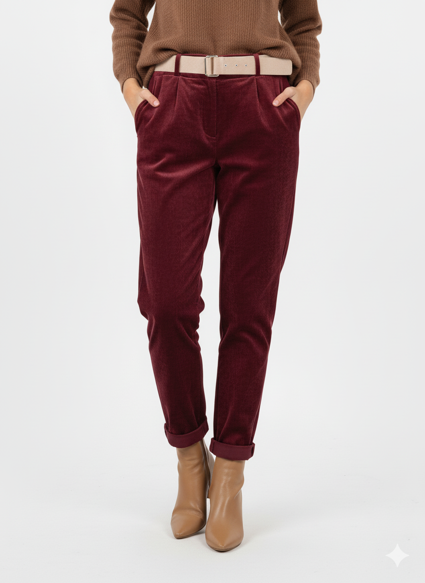 Bordeauxrode Damesbroek met Omslagzoom – Chic & Comfortabel