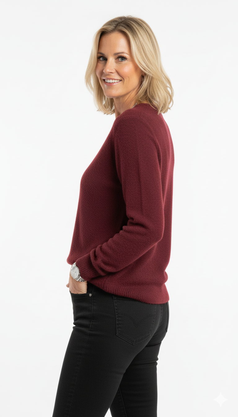 Bordeaux Fijngebreide Ronde Hals Trui Zachte Dames Basic