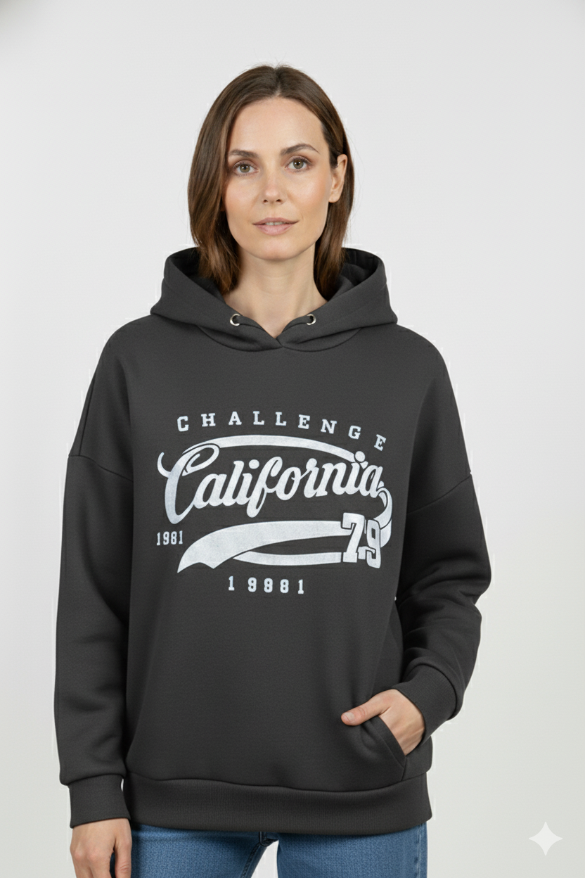 Zwarte Hoodie met ‘California Challenge’ Print – Sportieve Damestrui