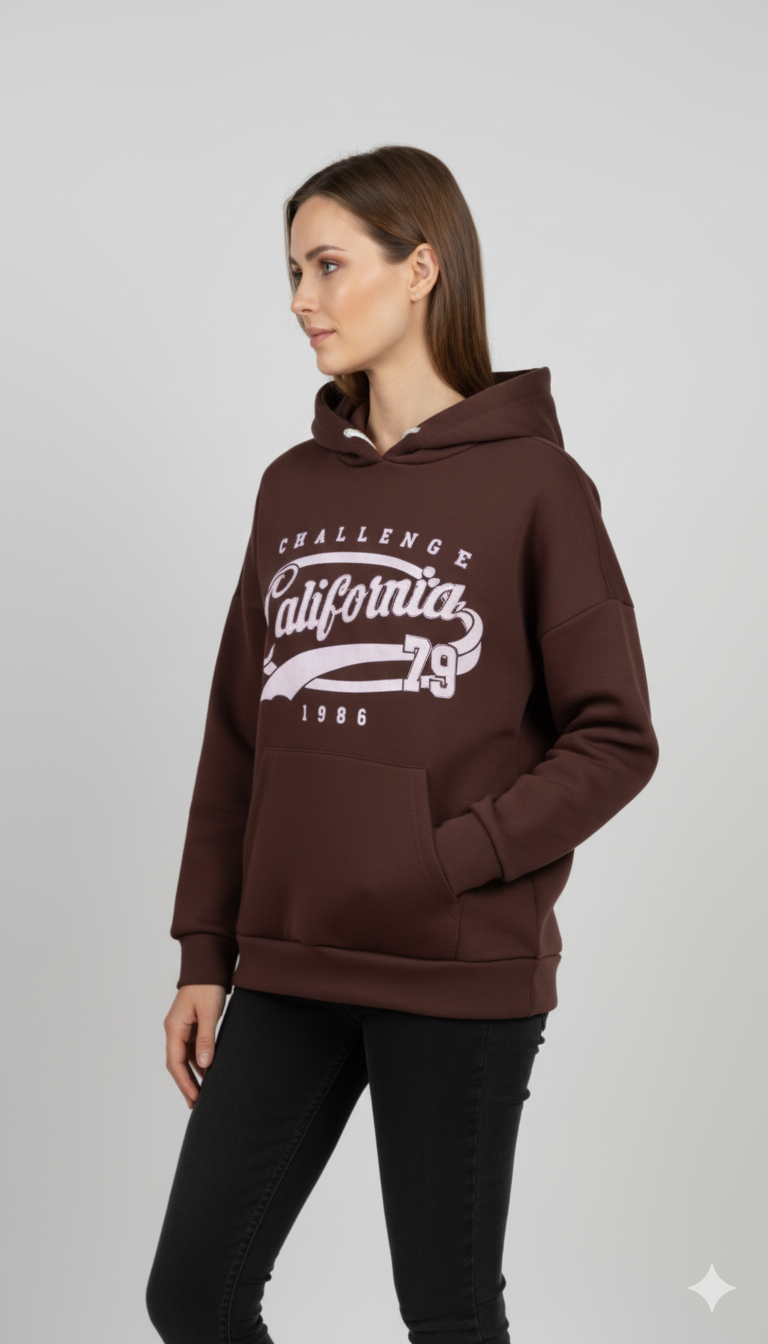 Bruine Hoodie met ‘California Challenge’ Print Casual Damestrui