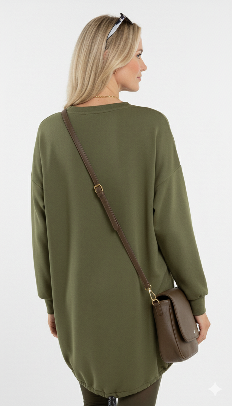 De elastische zoom en geribde boorden geven de sweater een moderne afwerking, waardoor hij perfect combineert met jeans, leggings of een leren broek. Ideaal voor een relaxte dag, een citytrip of een sportieve casual outfit.