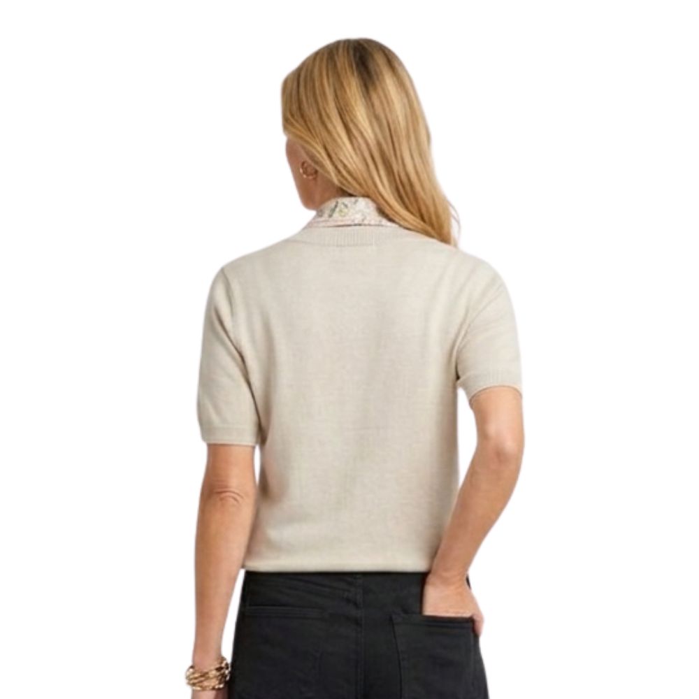 Deze taupe top met sjaaldetail is een perfecte mix van elegantie en comfort. De subtiele neutrale kleur maakt hem veelzijdig te combineren, terwijl het sjaaldetail bij de hals zorgt voor een verfijnde en vrouwelijke uitstraling.