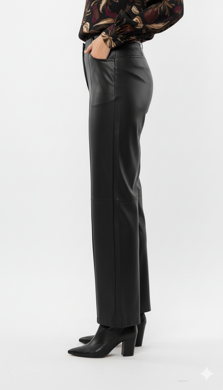 De luxe lederlook maakt deze zwarte damesbroek een tijdloze fashion essential voor de herfst en winter.