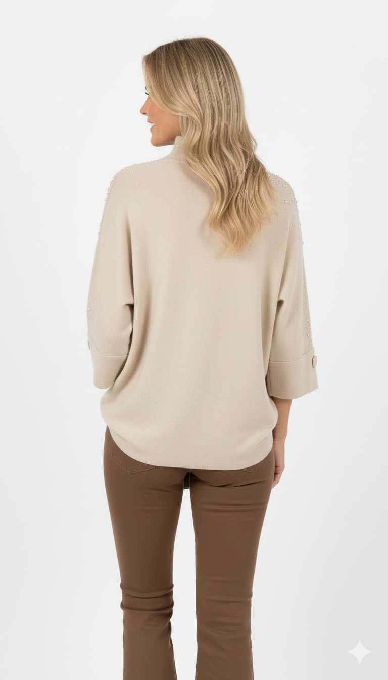 Maak kennis met Beige Trui met Steentjes op de Mouwen Chique Damestrui
