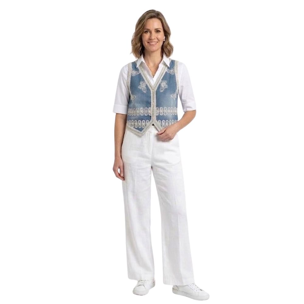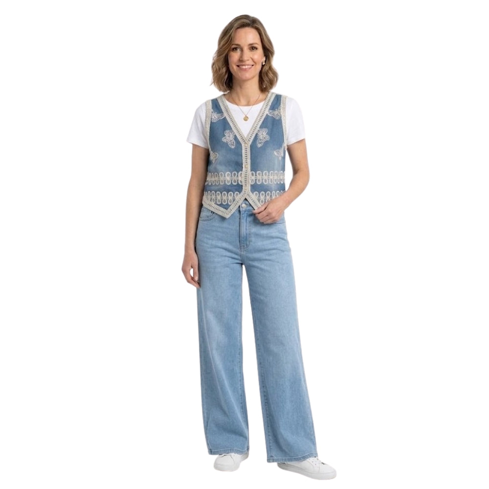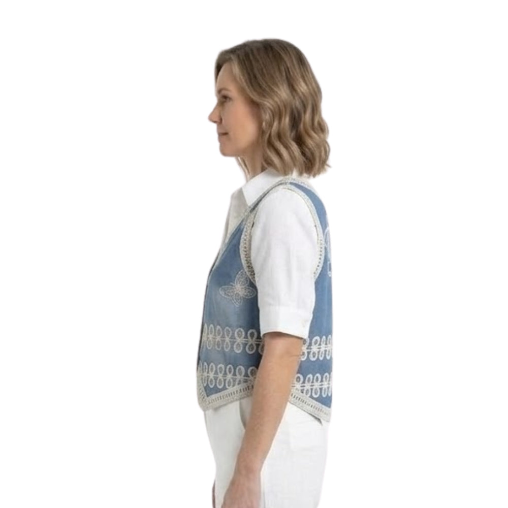 Bohemian Denim Look Gilet met Vlinders Blauw