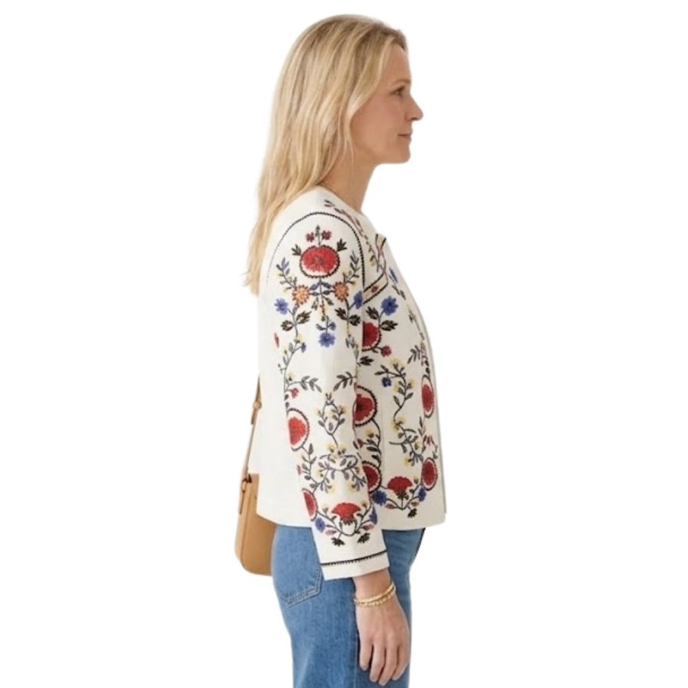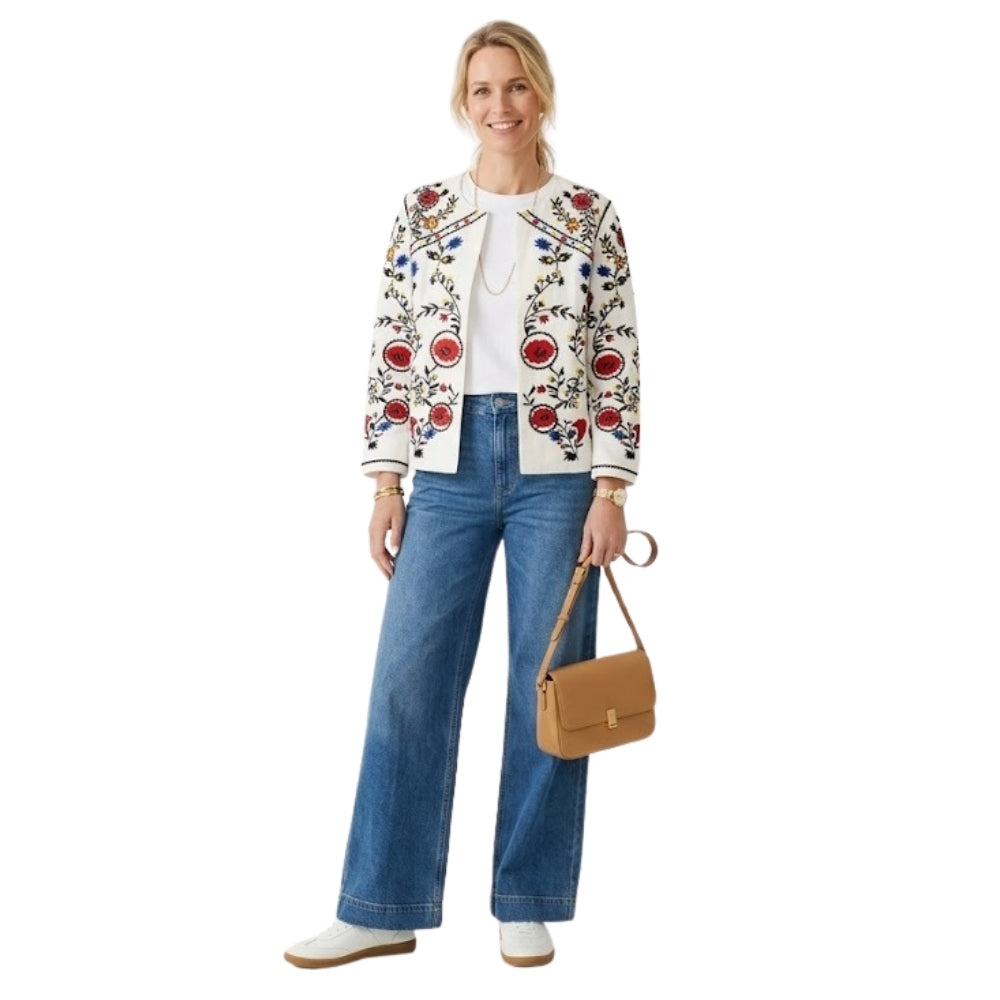Maak kennis met Katoenen Jasje met Kleurrijk Bloemenborduursel - Wit