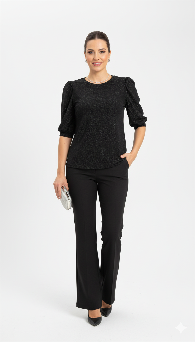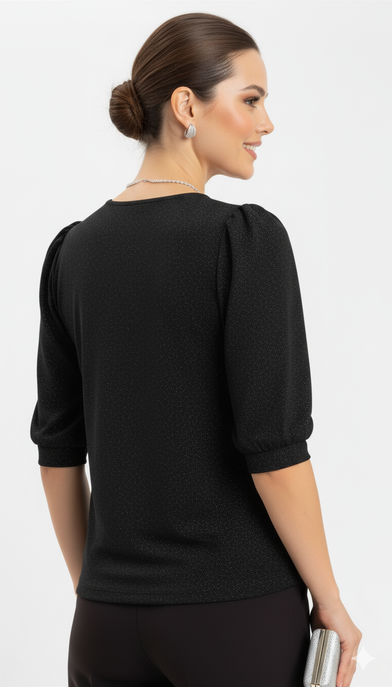 Zwarte Glitter Blouse Dames Feestelijke Top