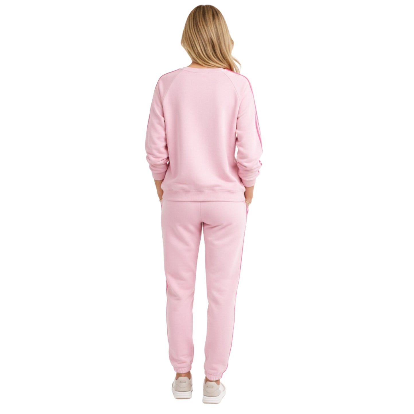 De Set Linda Pink is een comfortabele en trendy two-piece set in een zachte roze tint met sportieve contraststrepen. Deze set combineert moeiteloos stijl en comfort en is perfect voor een casual dag, een reis of een ontspannen weekend.