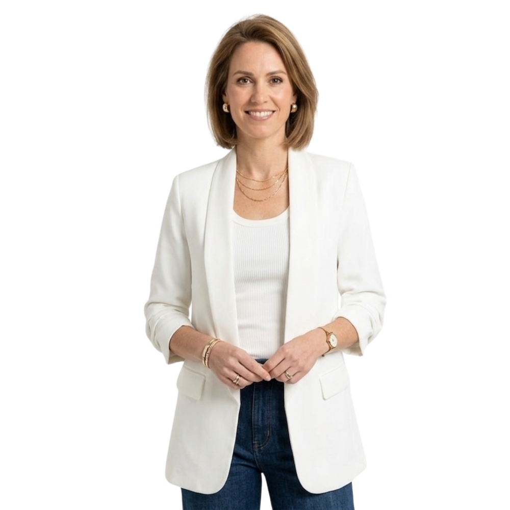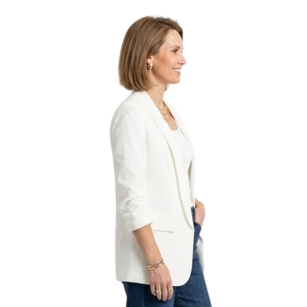 Blazer met Opgehaalde Mouwen en Stikseldetail Wit