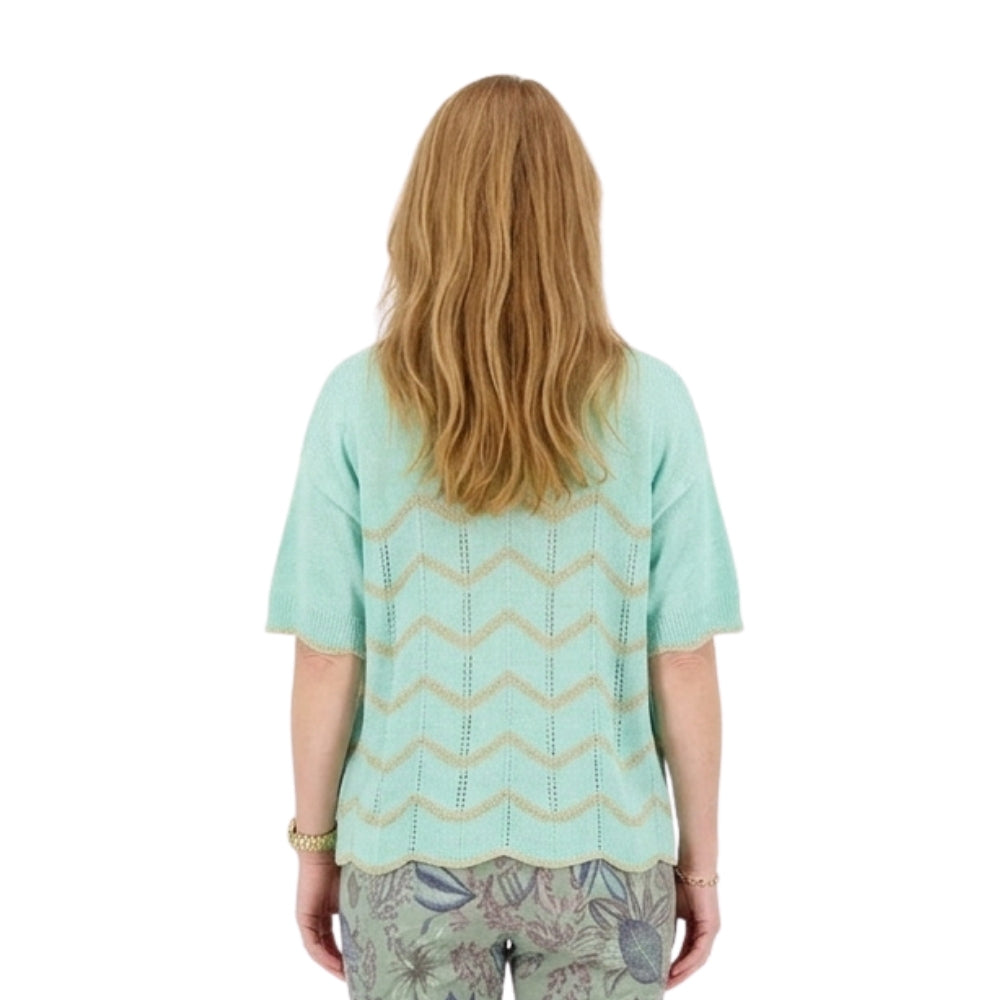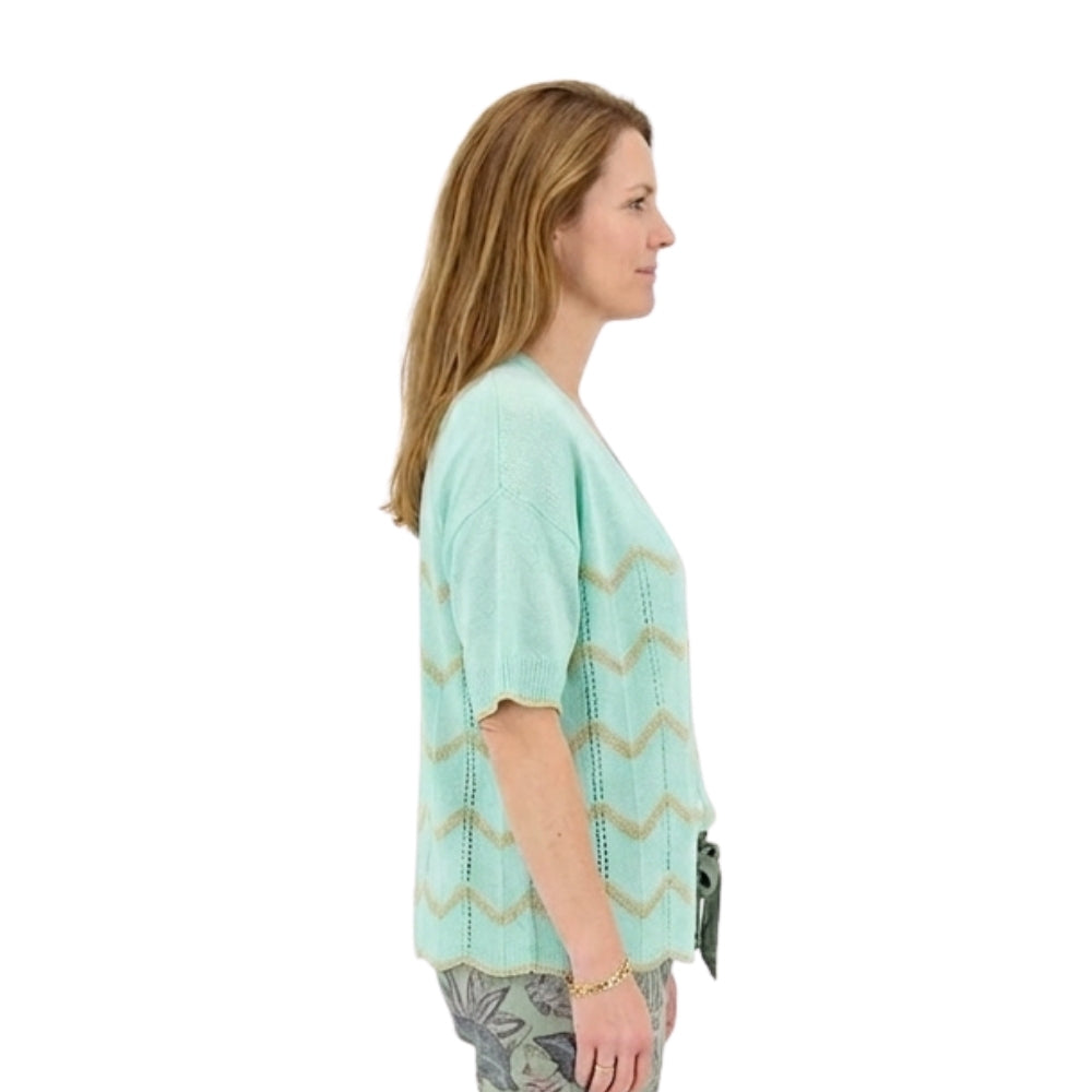 Deze mintgroene 2-delige gebreide set straalt rust en frisheid uit. Het verfijnde zigzag patroon geeft een speelse touch, terwijl de zachte tint perfect past bij een stijlvolle en moderne look.