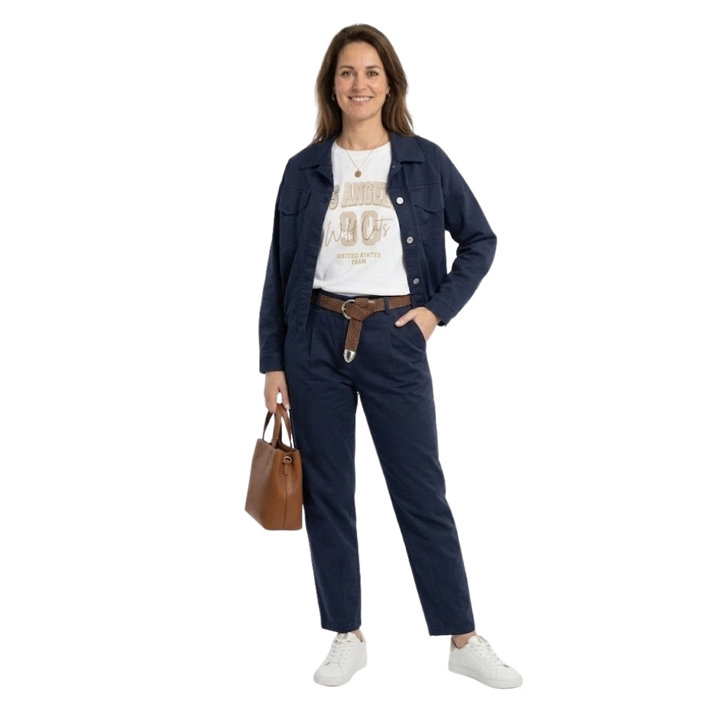 De Dream Denim oversized jack in marineblauw is een echte must-have voor elke garderobe. De diepe kleur geeft een chique en stoere uitstraling, terwijl de cropped fit en elastische taille zorgen voor een moderne en flatterende look.