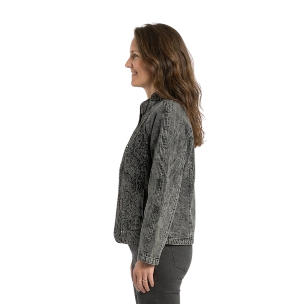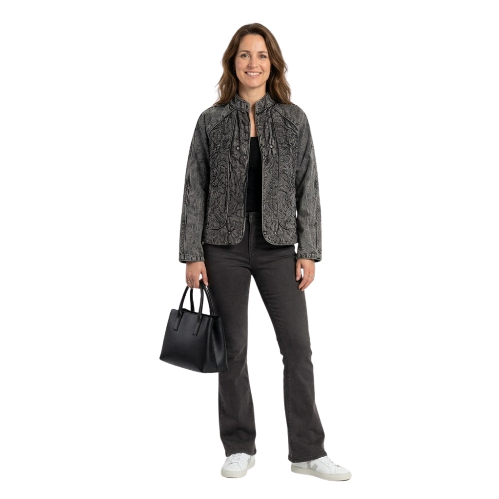 Jeansjasje met Wasbeurt en Borduurdetails - Grijs