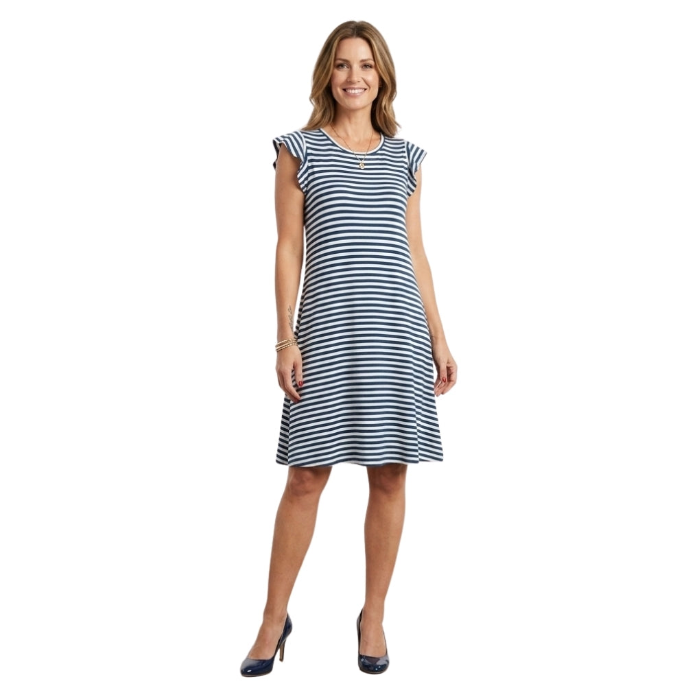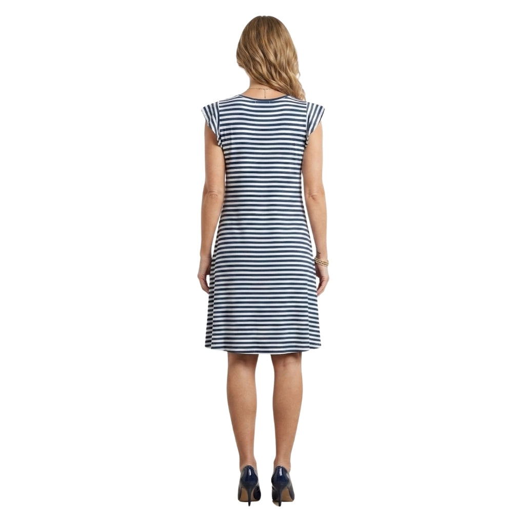 Streep Ruffel Dress Jeans Blauw