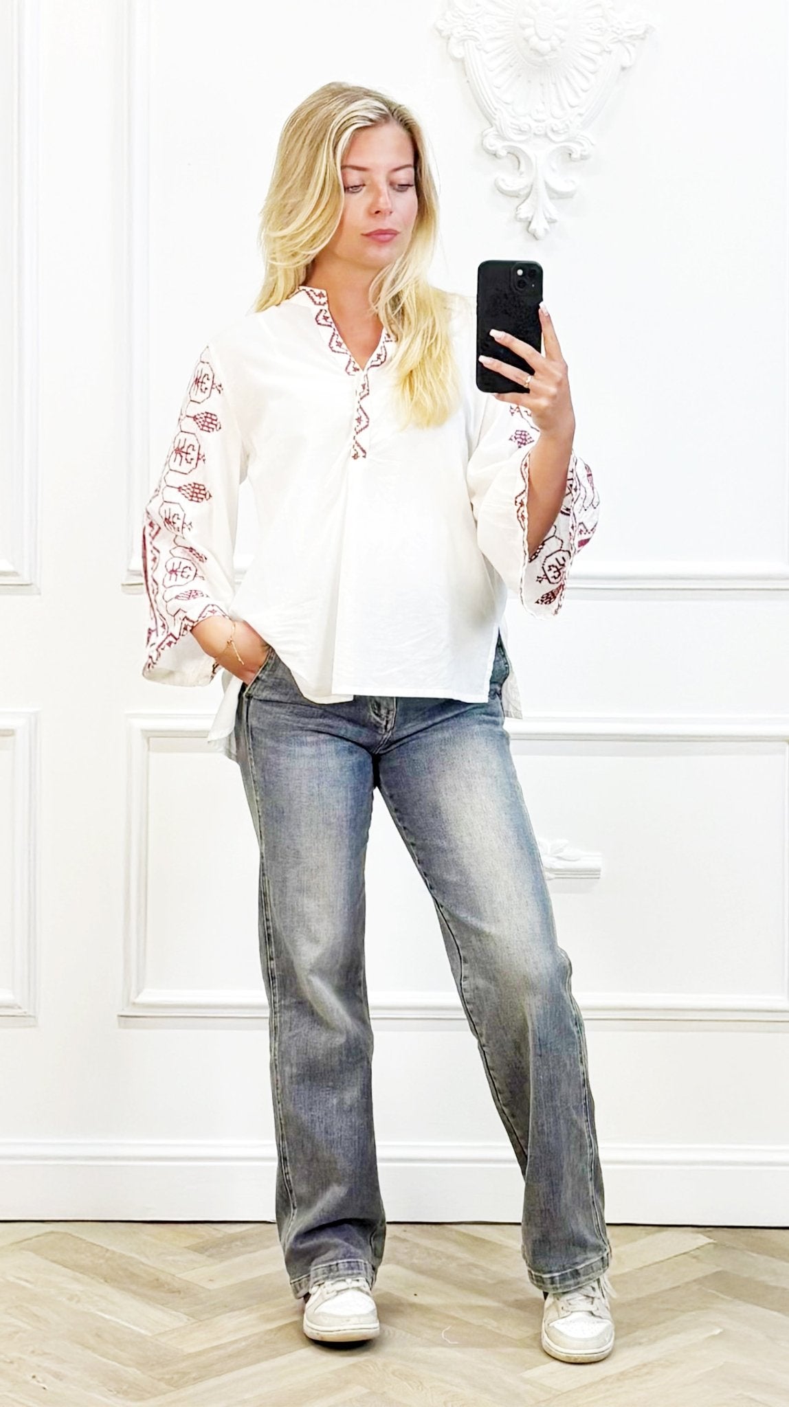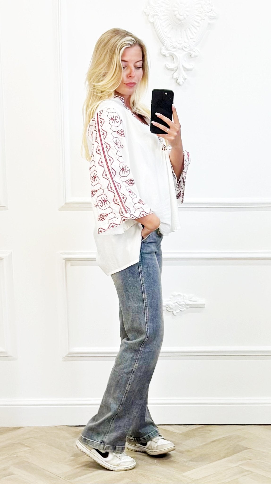 "Wijde Boho Top met Mouwenborduurwerk